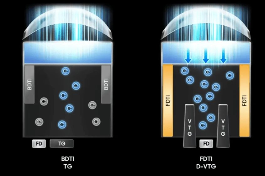 بالإضافة إلى ذلك، يتم استخدام تقنية DTI عالية الحساسية. وبعبارة بسيطة، فهو يساعد على عدم فقدان الضوء داخل المستشعر، ولكن على أن ينعكس بحيث يتلقى كل بكسل المزيد من الضوء القابل للاستخدام.