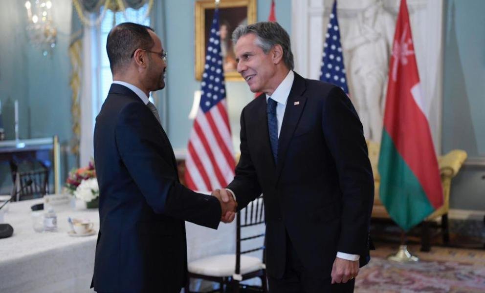 جاء ذلك خلال جلسة مباحثات بين وزير الخارجية العُماني بدر بن حمد البوسعيدي، مع نظيره الأمريكي أنتوني بلينكن، في العاصمة الأمريكية واشنطن.